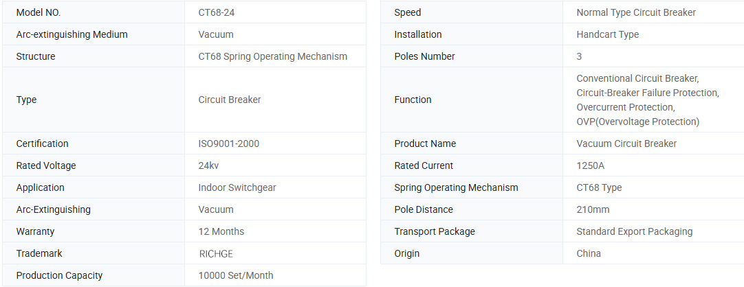 ماڈل CT68 -24 انڈور ویکیوم سرکٹ بریکر CT68 بہار آپریٹنگ میکانزم کے ساتھ استعمال۔ یہ تین فیز اے سی ، 50 ہرٹج انڈور پاور ڈٹریبریشن کا سامان 24KV کے وولٹیج کے ساتھ ہے۔