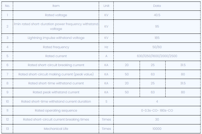 وولٹیج کی درجہ بندی:40.5KV (95KV بجلی کی تحریک کا مقابلہ کریں)۔