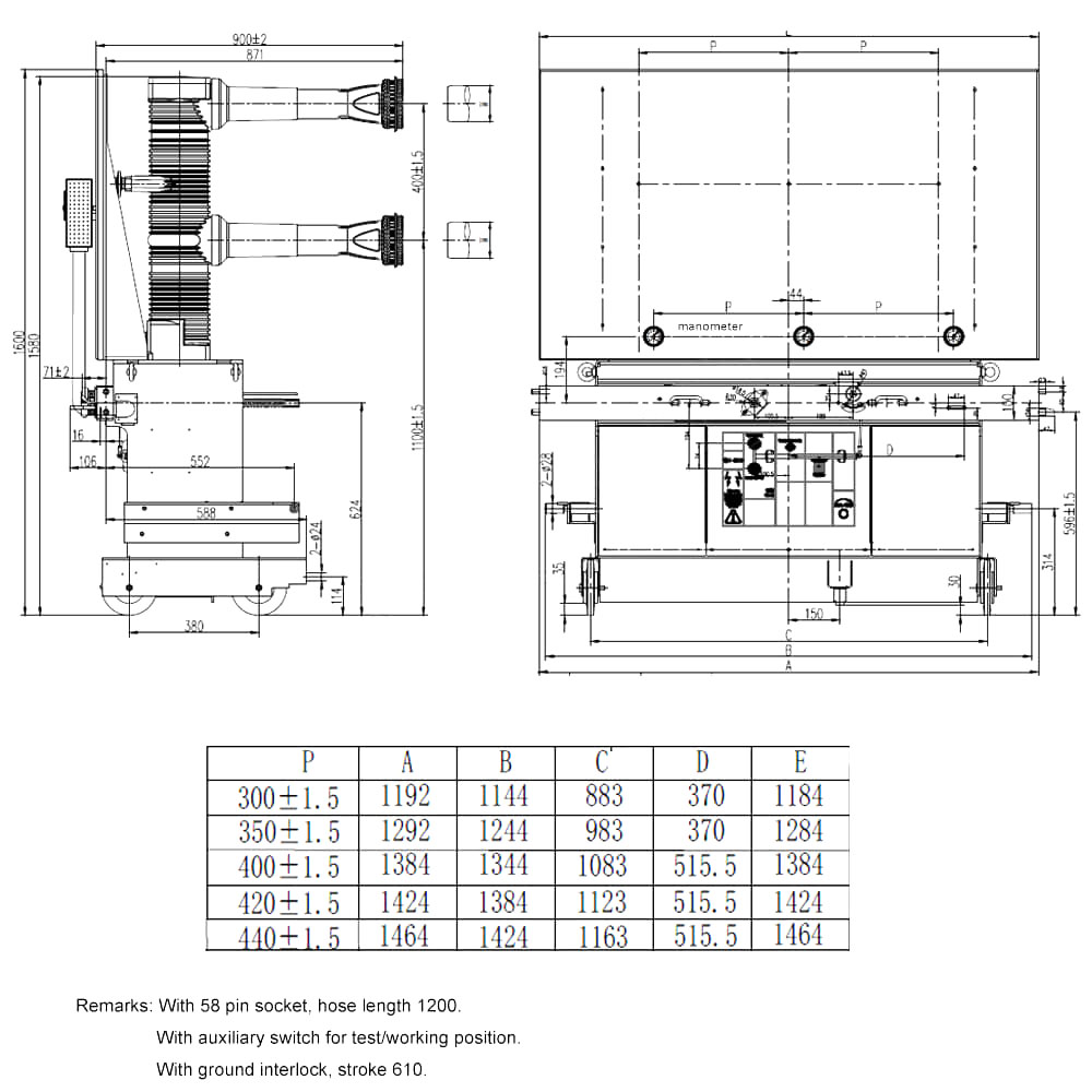 SF6 گیس سرکٹ بریکر مجموعی طور پر آؤٹ لائن ڈرائنگ
