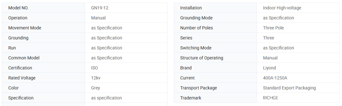 GN19-12 ، 12C سیریز انڈور ہائی وولٹیج منقطع سوئچز (اس کے بعد منقطع سوئچز کے طور پر جانا جاتا ہے) انڈور ڈیوائسز ہیں جن کی درجہ بندی وولٹیج 12KV ، تین فیز AC 60Hz ہے ، اور جب وولٹیج اور کوئی بوجھ نہیں ہے تو تقسیم اور بند کرنے والے سرکٹس کو تقسیم کرنے اور بند کرنے کے لئے استعمال کیا جاتا ہے۔