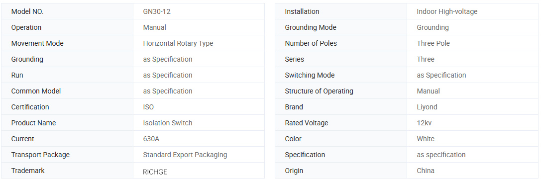 GN30-12 الگ تھلگ سوئچ کی خصوصیات