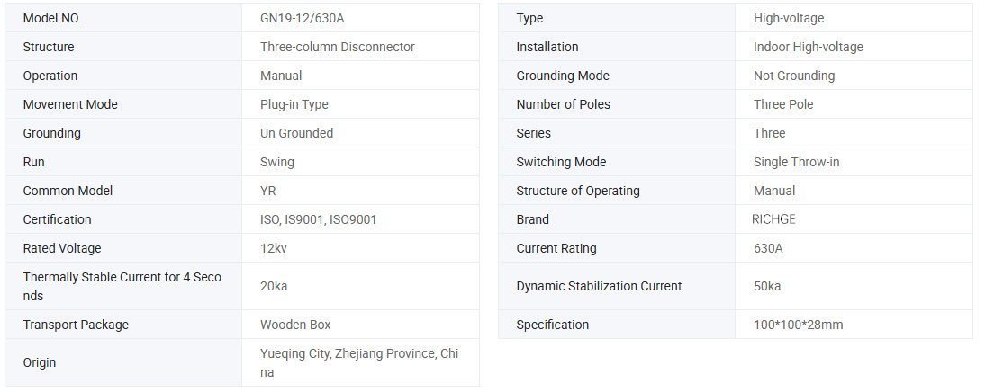 GN19-12 (c) سیریز انڈور AC ہائی وولٹیج تنہائی سوئچ AC 50Hz کے لئے موزوں ہے ac 12kV ، 10KV ، درجہ بندی کرنے والی وولٹیج ، ریٹیڈ ورکنگ کرنٹ 400A ، 630A ، 1250A پاور سسٹم کے لئے ، ایک وولٹیج کے لئے اور کوئی بوجھ نہیں ہے ، جس کو توڑنے کی حالت کے تحت ، بند سرکٹ انڈور سوئچ گیئر اور نیچے بجلی کے تحت وولٹیج 12KV اور نیچے نہیں۔ وولٹیج کی حالت لیکن کوئی بوجھ نہیں ، اینٹی فاؤلنگ کی قسم ، مرتفع قسم اور براہ راست ڈسپلے ڈیوائسز تیار کرنے کے لئے بھی روانہ کیا جاتا ہے جو انسٹال ہوسکتے ہیں۔ GN19-12 سیریز انڈور ہائی وولٹیج الگ تھلگ سوئچ ایک انڈور ڈیوائس ہے جس میں 12KV اور تین فیز AC 50Hz کی درجہ بندی والی وولٹیج ہے۔