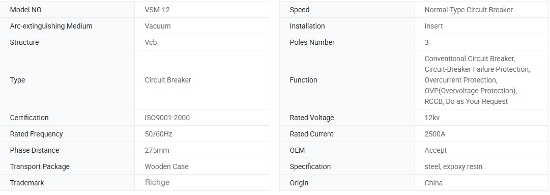 VSM-12 ویکیوم سرکٹ بریکر ایک مستقل مقناطیس آپریٹنگ میکانزم اور فرنٹ اور ریئر ترتیب میں ویکیوم رکاوٹ کو مربوط کرتا ہے۔ بریکر میں ایک ڈرا آؤٹ قسم کا ڈیزائن شامل ہے جس میں ایک مقررہ آرک-باہر باہر نکلنے والے کالم (ٹھوس سگ ماہی کے کھمبے) کے ساتھ ڈیزائن کیا گیا ہے اور بجلی کے ماحول کا مطالبہ کرنے میں اعلی وشوسنییتا اور کارکردگی کے لئے ڈیزائن کیا گیا ہے۔